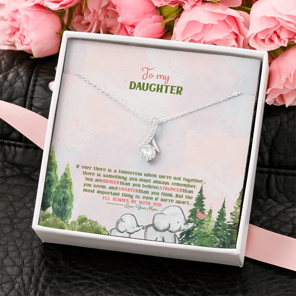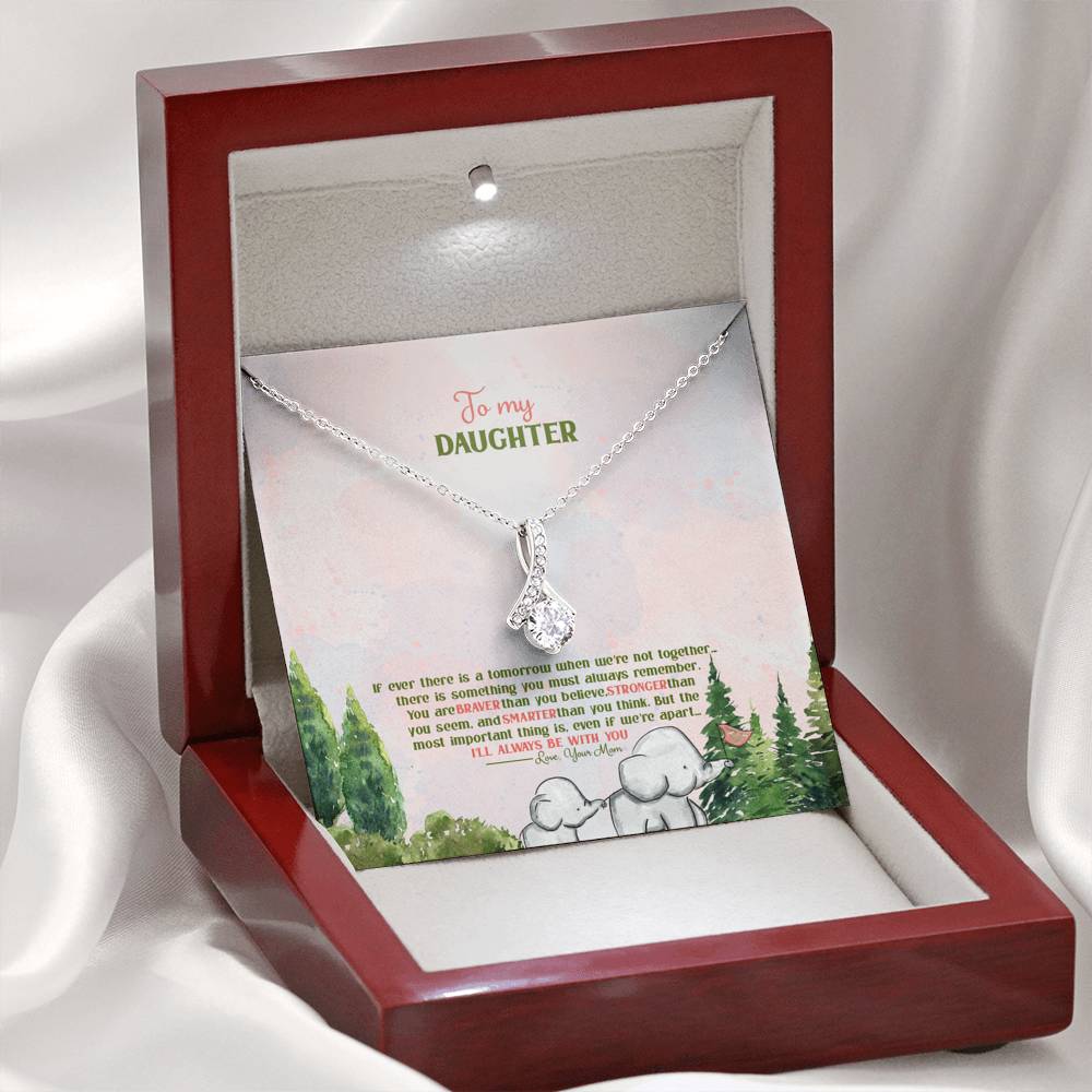Melt her heart with this ALLURING BEAUTY necklace gift! The petite ribbon shaped pendant is finished with 14K white gold over stainless steel, and is embellished with dainty clear crystals surrounded by a sparkling 7mm round cut Cubic Zirconia.