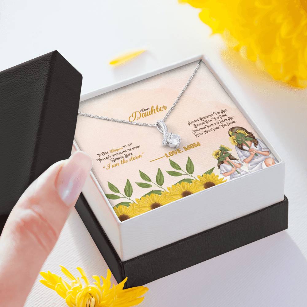 Melt her heart with this ALLURING BEAUTY necklace gift! The petite ribbon shaped pendant is finished with 14K white gold over stainless steel, and is embellished with dainty clear crystals surrounded by a sparkling 7mm round cut Cubic Zirconia.