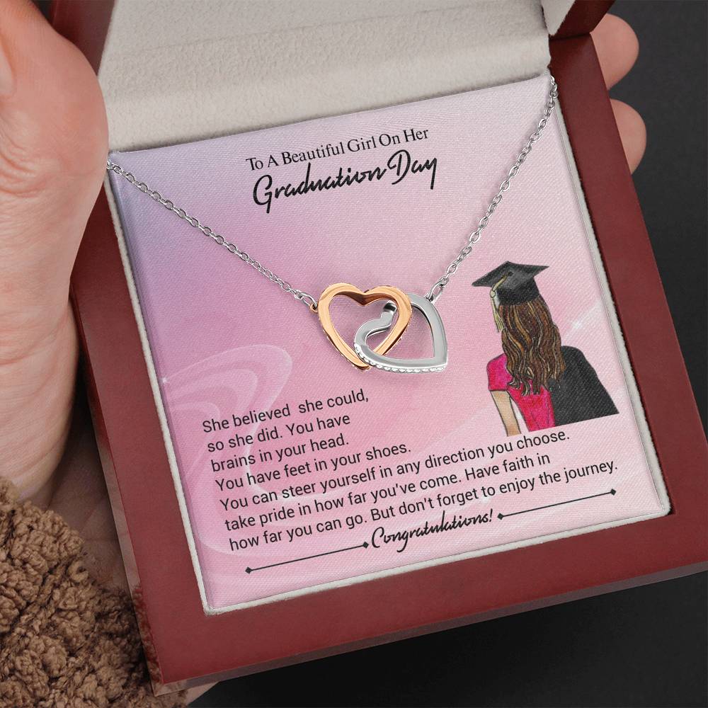 Two hearts embellished with Cubic Zirconia stones, interlocked together as a symbol of never-ending love. Made with high quality polished surgical steel. Cable chain measures 18 inches with a 4 inch extension, and fastens with a lobster clasp.
