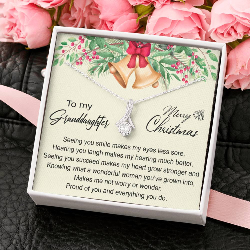 "Seeing you smile makes my eyes less sore, Hearing you laugh makes my hearing much better, Seeing you succeed makes my heart grow stronger and knowing what a wonderful woman you've grown into, makes me not worry or wonder. Proud of you and everything you do."