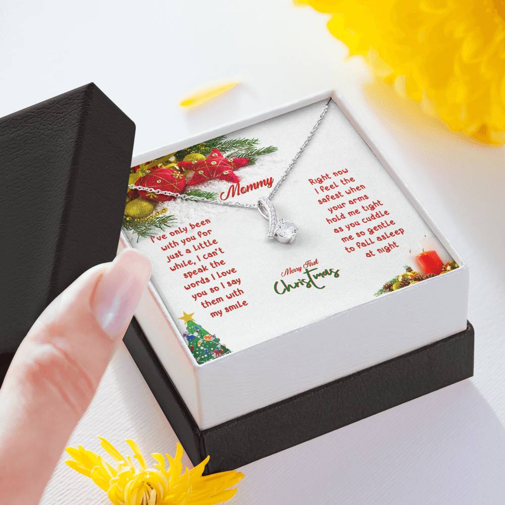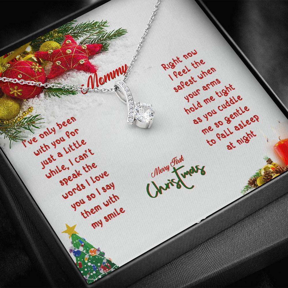 "I've only been with you for just a little while, I can't speak the words I love you so I say them with my smile. Right now I feel the safest when your arms hold me tight as you cuddle me so gentle to fall asleep at night. Merry First Christmas"