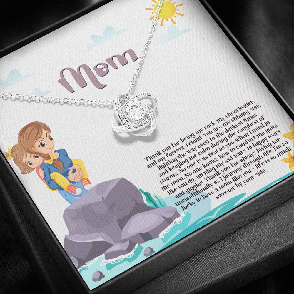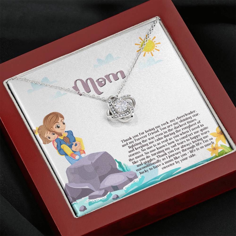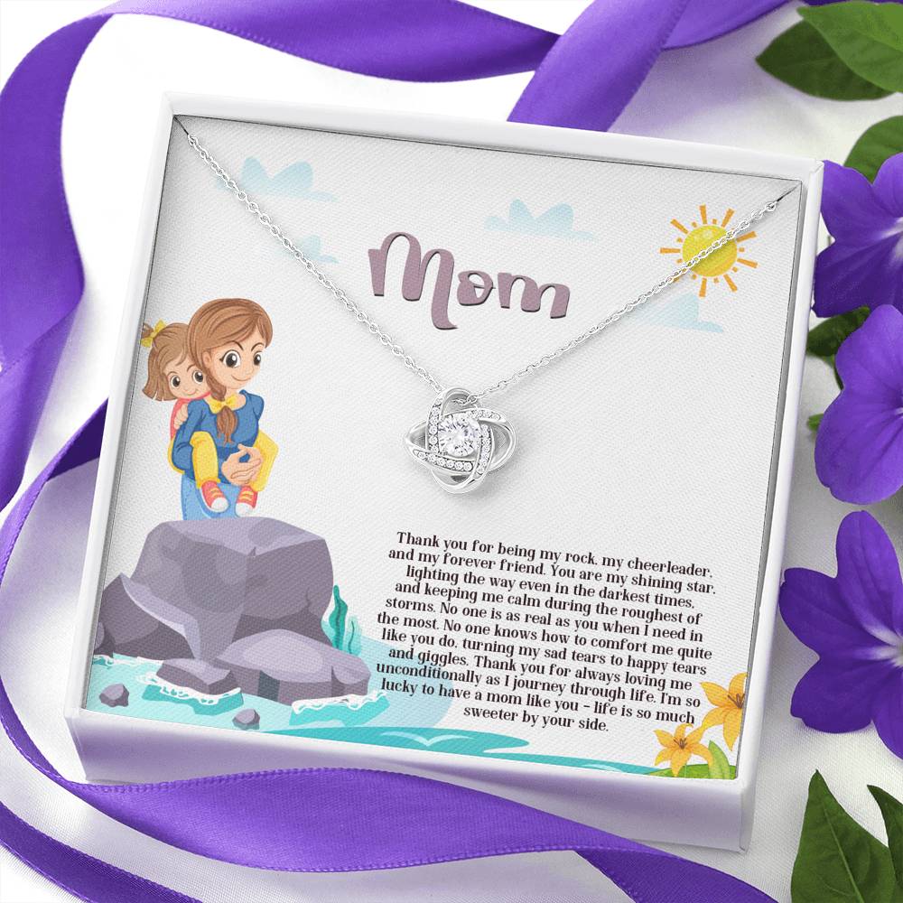 "Thank you for being my rock, my cheerleader, and my forever friend. You are my shining star lighting the way even in the darkest times and keeping me calm during the roughness of storms. No one is as real as you when I need it the most. No one knows how to comfort me quite like you do. Turning my sad tears to happy tears and giggles. Thank you for always loving me unconditionally as I journey through life. I'm so lucky to have a mom like you - life is so much sweeter by your side."