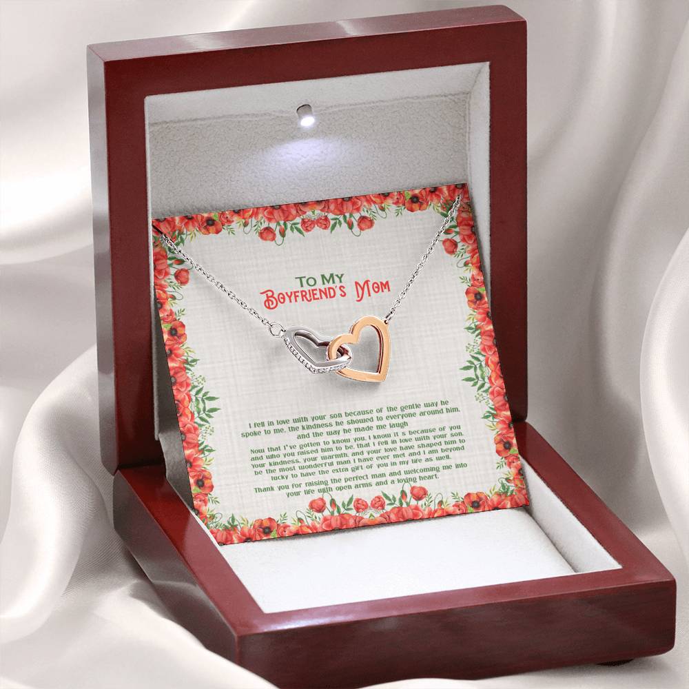 "I fell in love with your son because of the gentle way he spoke to me. The kindness he showed to everyone around him, and the way he made me laugh. Now that I've gotten to know you. It's because of you and who you raised him to be, that I fell in love with your son, your kindness, your warmth, and your love have shaped him to be the most wonderful man I have ever met and I am beyond lucky to have you the extra gift of you in my life as well. Thank you for raising the perfect man and welcoming me into your life with open arms and a loving heart."