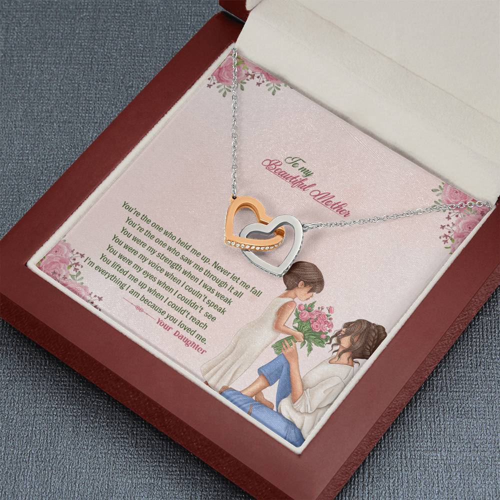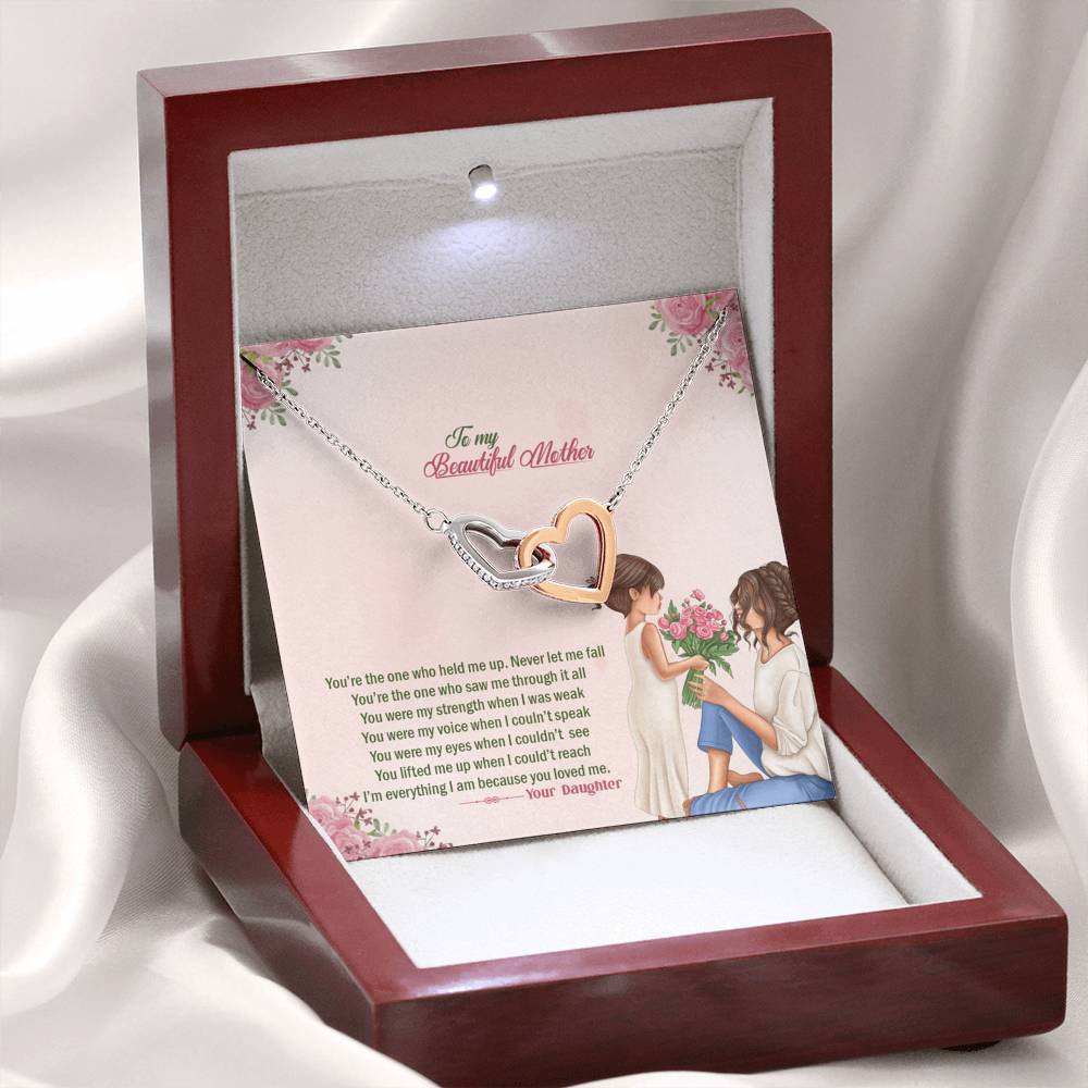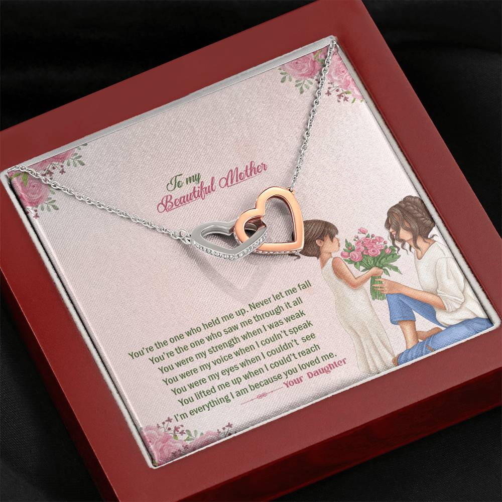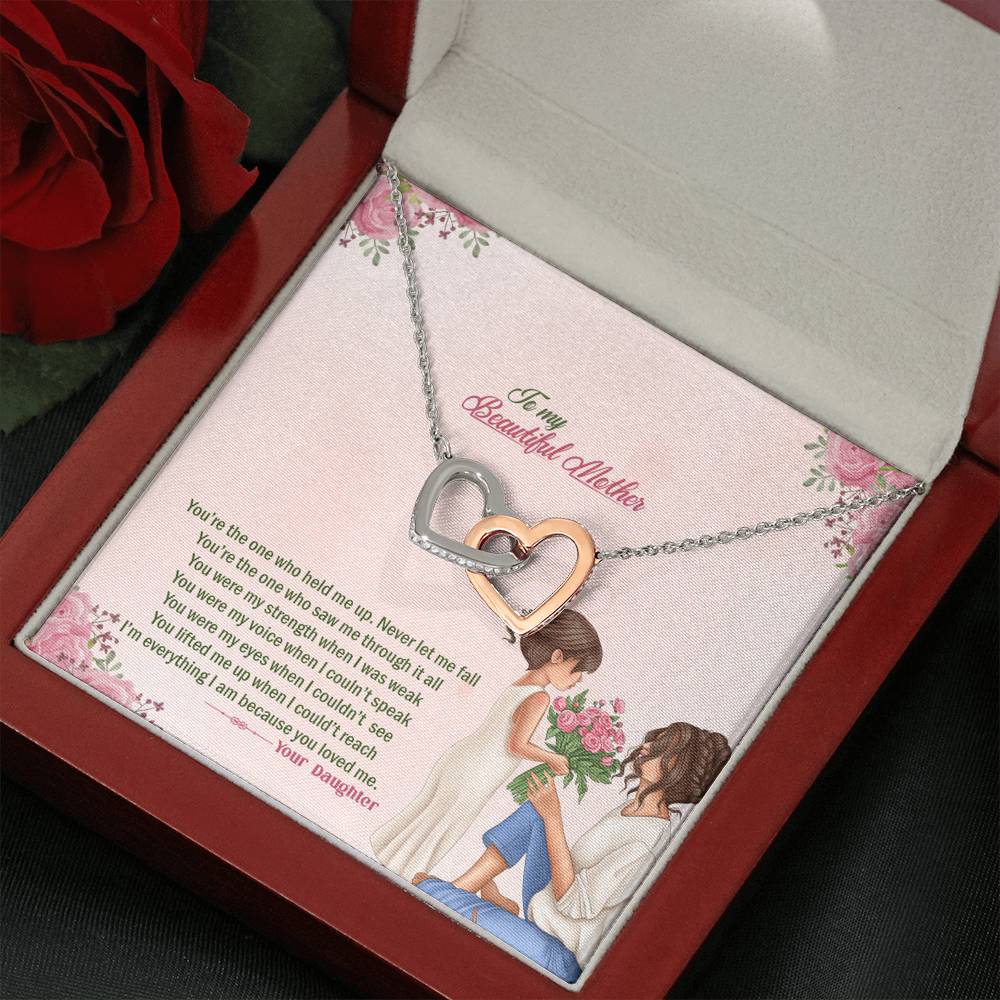 "You're the one who held me up. Never let me fall. You're the one who saw me through it all, you were my strength when I was weak, you were my voice when I couldn't speak, you were my eyes when I couldn't see, you lifted me up when I couldn't reach, I am everything I am because you loved me."