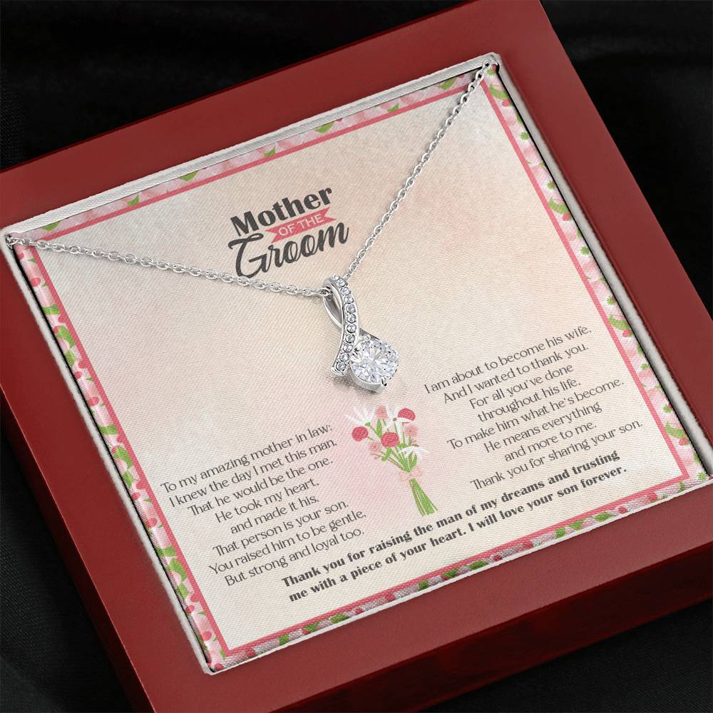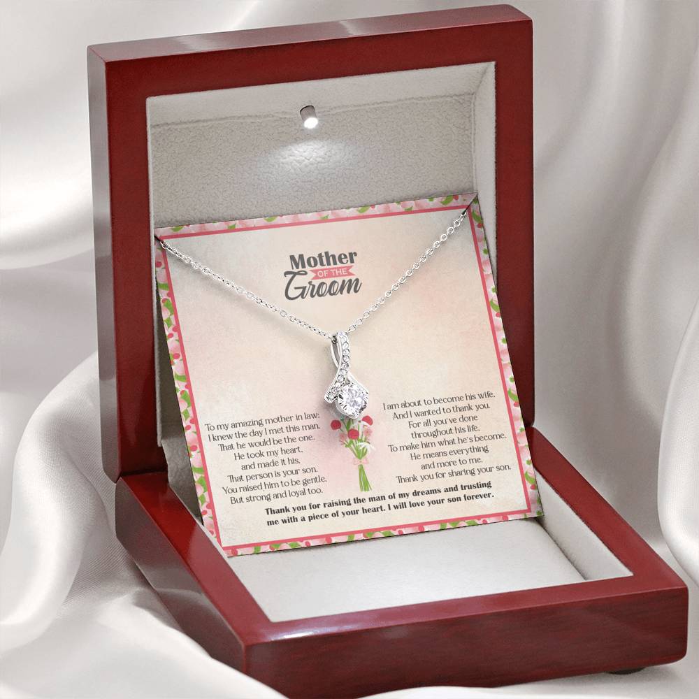 "To my amazing mother-in-law: I knew the day I met this man, that he would be the one. He took my heart and made it his. That person is your son. You raised him to be gentle. But strong and loyal too. I am about to become his wife and I wanted to thank you for all you've done throughout his life. To make him what he's become. He means everything and more to me. Thank you for sharing your son. Thank you for raising the man of my dreams and trusting me with a piece of your heart. I will love your son forever."