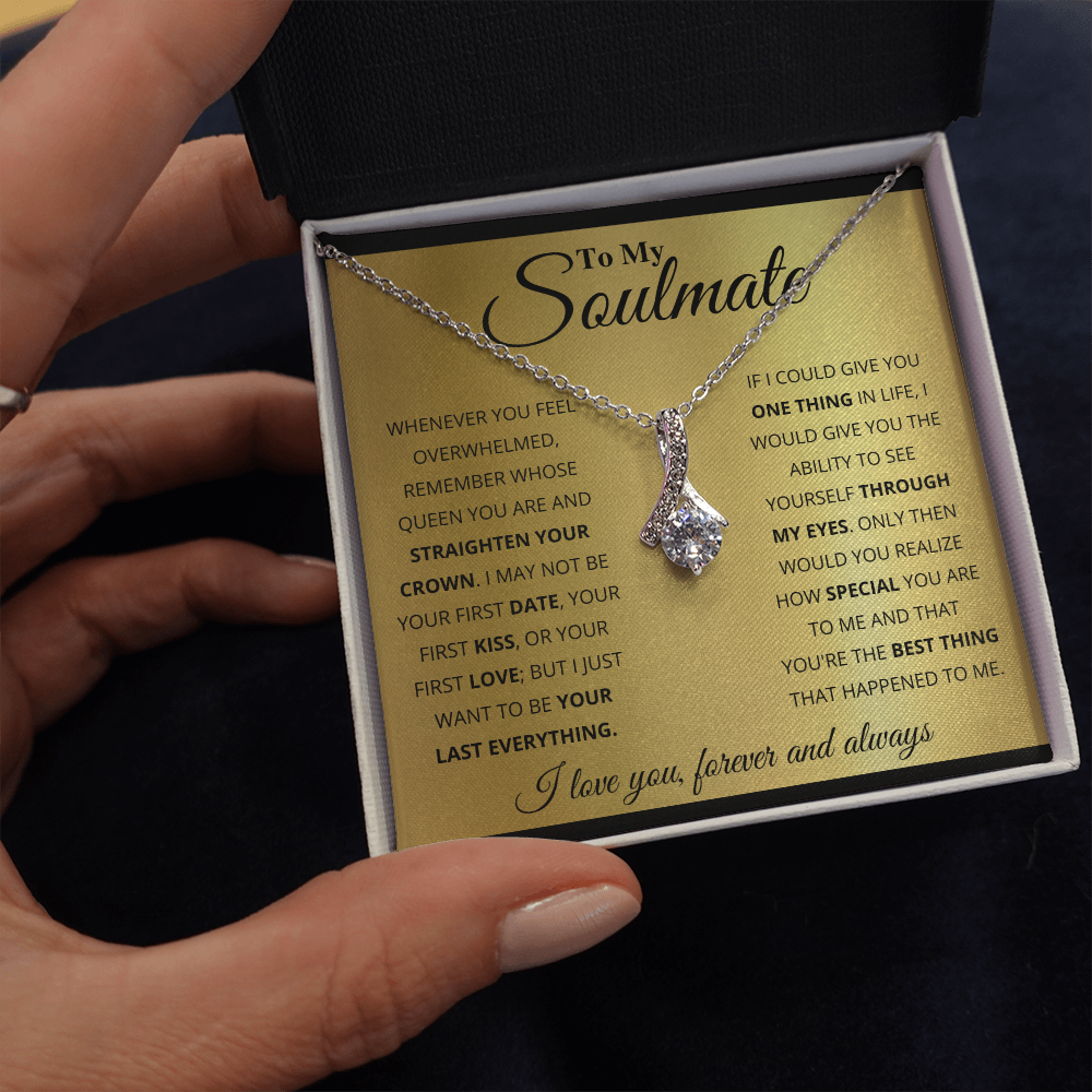 Melt her heart with this ALLURING BEAUTY necklace gift! The petite ribbon shaped pendant is finished with 14K white gold over stainless steel, and is embellished with dainty clear crystals surrounded by a sparkling 7mm round cut Cubic Zirconia.