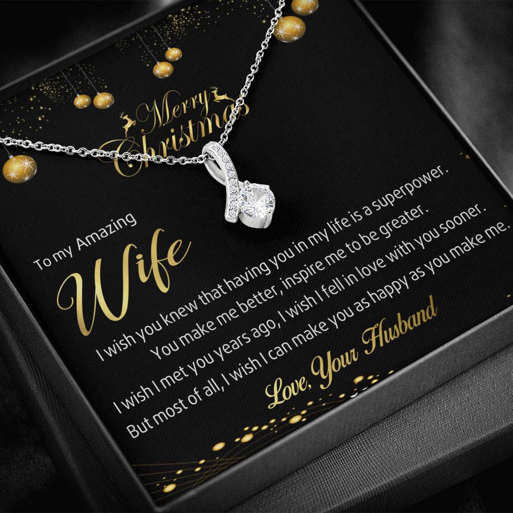 Melt her heart with this ALLURING BEAUTY necklace gift! The petite ribbon shaped pendant is finished with 14K white gold over stainless steel, and is embellished with dainty clear crystals surrounded by a sparkling 7mm round cut Cubic Zirconia.