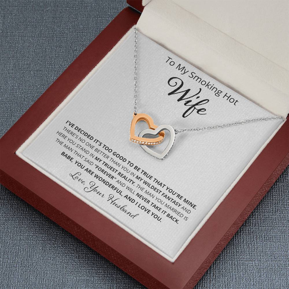 Two hearts embellished with Cubic Zirconia stones, interlocked together as a symbol of never-ending love. Made with high quality polished surgical steel. Cable chain measures 18 inches with a 4 inch extension, and fastens with a lobster clasp.