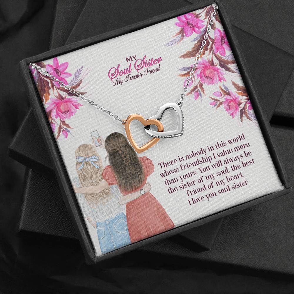 "There is nobody in this world whose friendship I value more than yours. You will always be the sister of my soul, the best friend of my heart. I love you soul sister"
