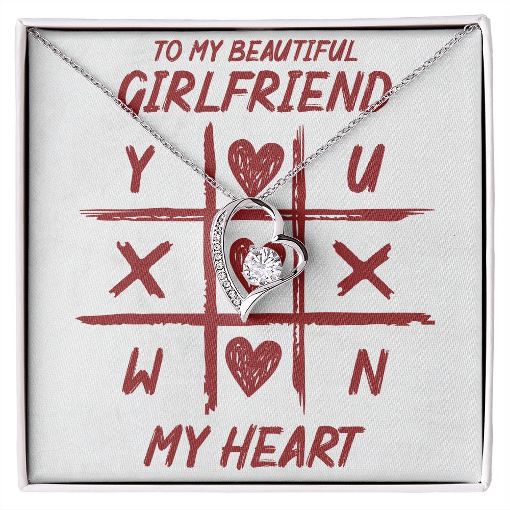 The dazzling Forever Love Necklace is sure to make her heart melt! This necklace features a stunning 6.5mm CZ crystal surrounded by a polished heart pendant embellished with smaller crystals to add extra sparkle and shine. Beautifully crafted with either a white gold or yellow gold finish, be sure to give her a classic gift she can enjoy everyday.