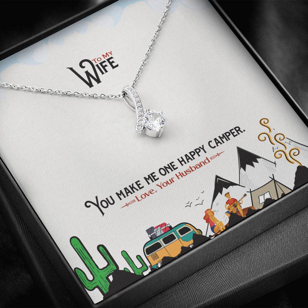 Melt her heart with this ALLURING BEAUTY necklace gift! The petite ribbon shaped pendant is finished with 14K white gold over stainless steel, and is embellished with dainty clear crystals surrounded by a sparkling 7mm round cut Cubic Zirconia.